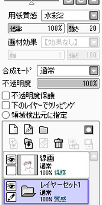 ■線画レイヤーの下にレイヤーセットを作成し、用紙質感を設定します。